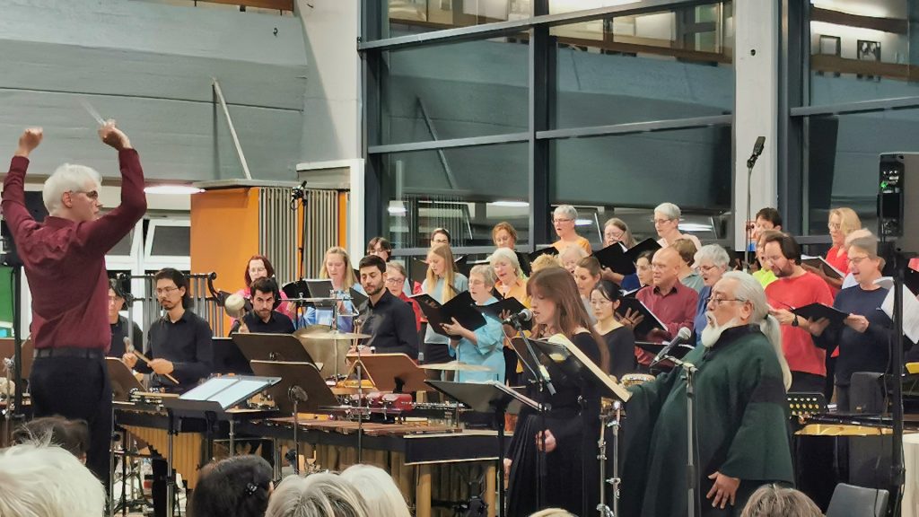 Geprobt wird in ca. vierwöchigem Rhythmus samstags oder sonntags für 4 – 5 Stunden.